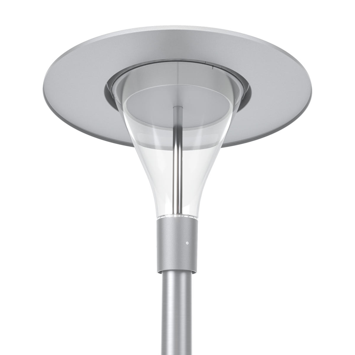 Luminaria de parque en forma moderna para fuentes de luz LED. Alta eficacia a 132 lm/W. Rango de flujo luminoso 2350 - 4400 [lm]. Temperatura de color variada 3000 - 4000 [K]. Rango de temperatura de trabajo [°C] -40 ... +50, -40 ... +55. Potencia 220-240V 50/60Hz.